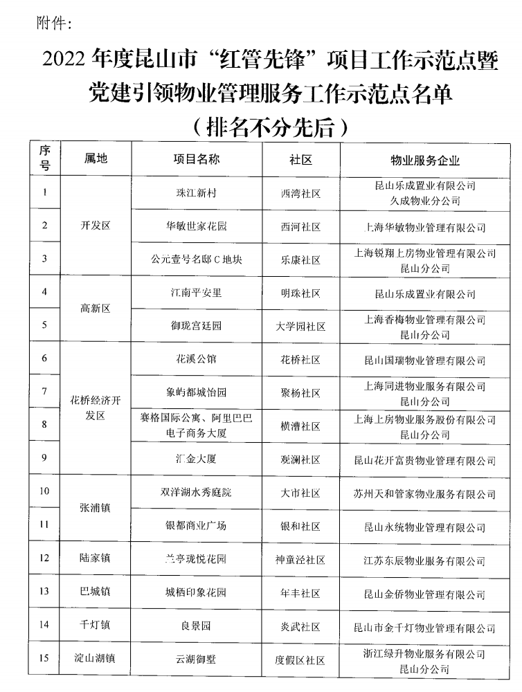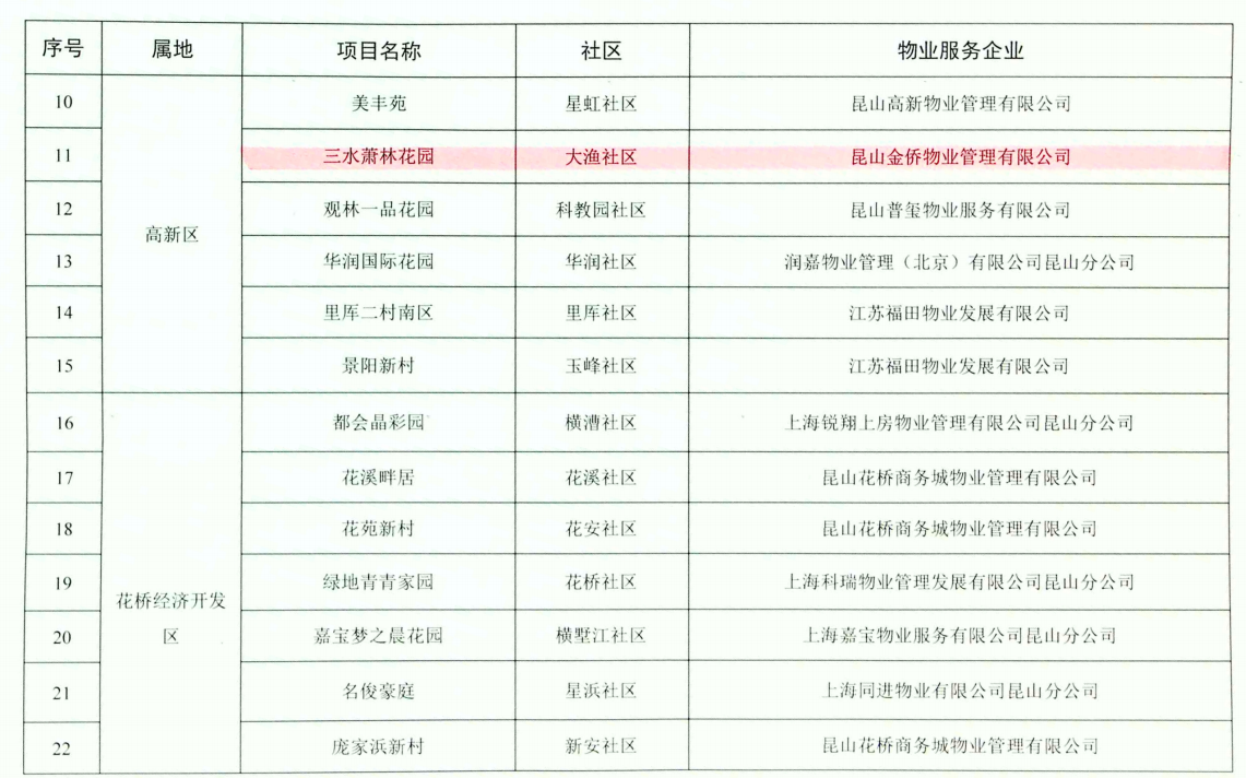 在管办公楼、厂区等公建项目11个:昆山万家汇商贸城、昆山海关、昆山市公安局战训基地、昆山市震川办事处卫生服务中心、昆山市巴城镇综合执法局、昆山市周市镇新镇卫生服务中心、昆山人力资源市场、昆山市公安局综管办大楼及轨交派出所、花桥经济开发区金城幼儿园及曹浦幼儿园校园、昆山市青阳社区卫生服务中心、昆山融城丰汇商业坊。