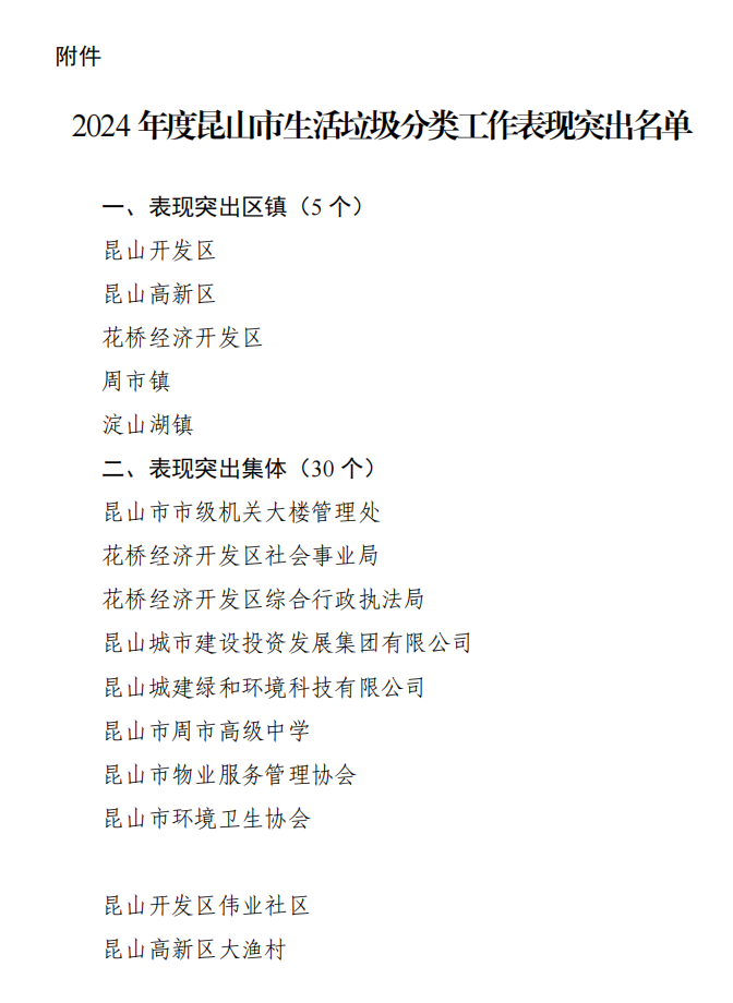 2025年2月,公司荣获“2024年度昆山市生活垃圾分类工作表现突出集体”。